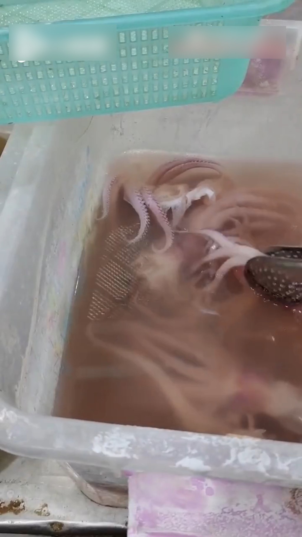 ▼隔天她不信有這麼誇張的事,又跑去市場在同一個攤位買魷魚、帶回家煮。5分半鐘後,湯鍋中的魷魚再次消失,只剩下一堆白泡泡。煮到8分鐘的時候,連渣渣都溶解掉,湯鍋中的水變成了淡粉色。她無奈說,雖然魷魚的價格不貴,但完全沒有吃到,讓她很不悅,也覺得很不衛生,懷疑是不是這些魷魚有食安問題?
