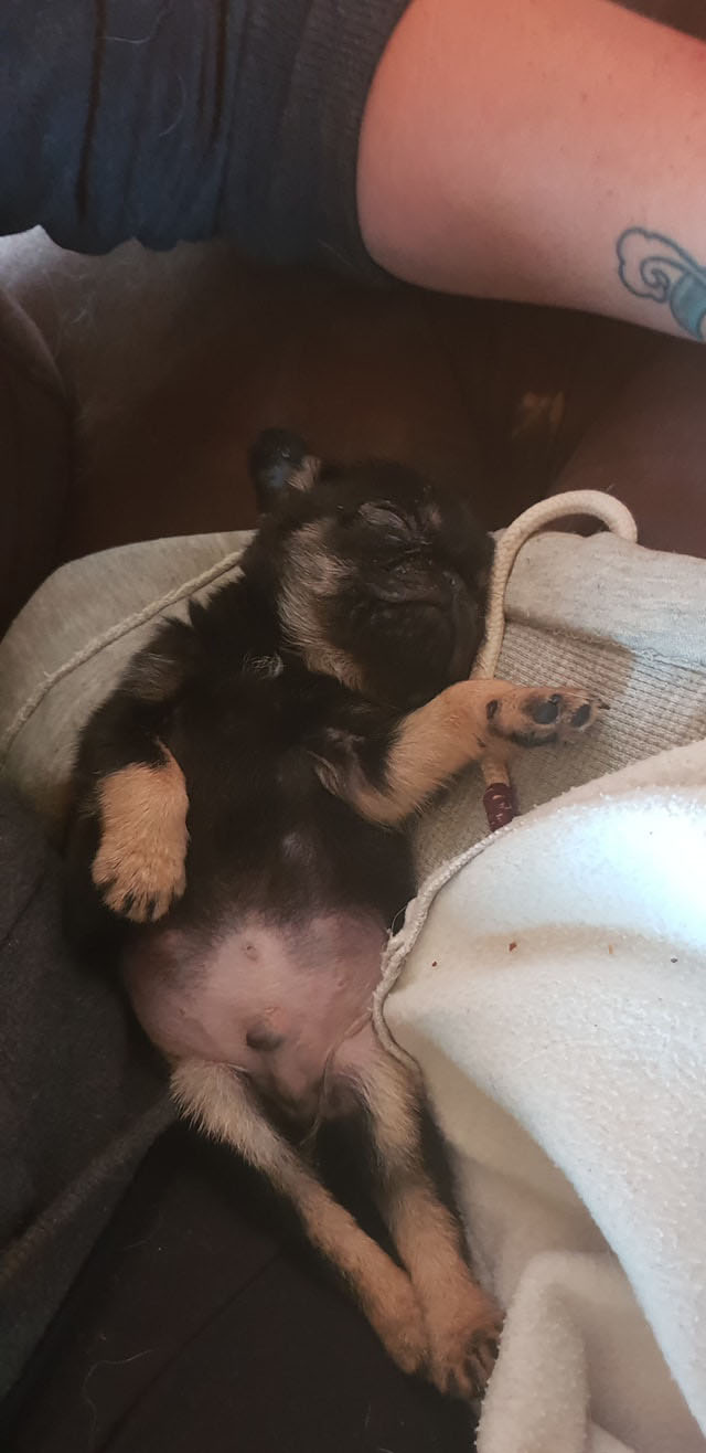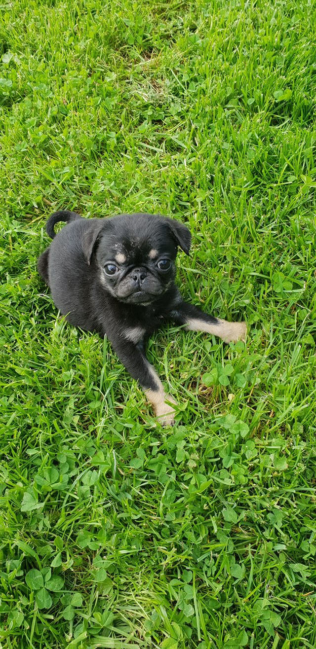 2022年02月14日日前愛爾蘭一名網友經過一處草叢時,突然聽到了幾聲微弱的狗叫。他連忙過去查看,這才發現有一隻剛剛出生不到5週的巴哥犬被裝在塑膠袋裡拋棄了。牠已經餓了好久,瘦得皮包骨,全身都是跳蚤,還有一隻腳受傷了。網友連忙將牠送到動物救援中心「Coolronan Dog Rescue」接受治療。