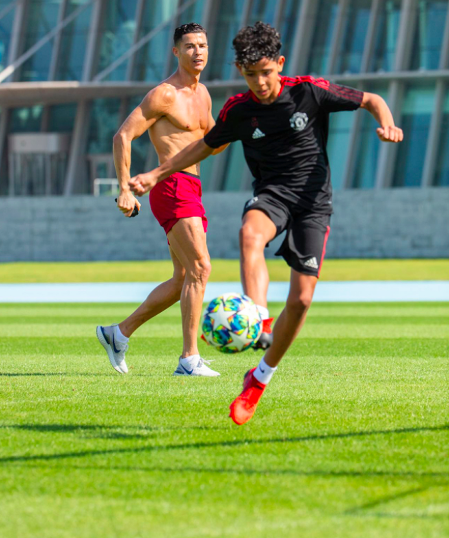 C羅今年已經37歲,仍維持著相當驚人的體態。作為世界足壇史上最偉大的球員之一,他一刻也沒有放縱自己。在他的教育下,迷你羅的未來也無可限量啊~