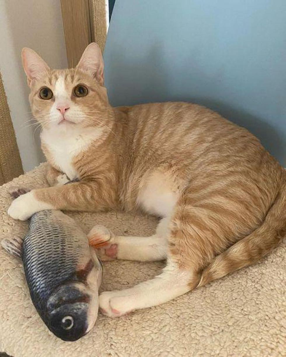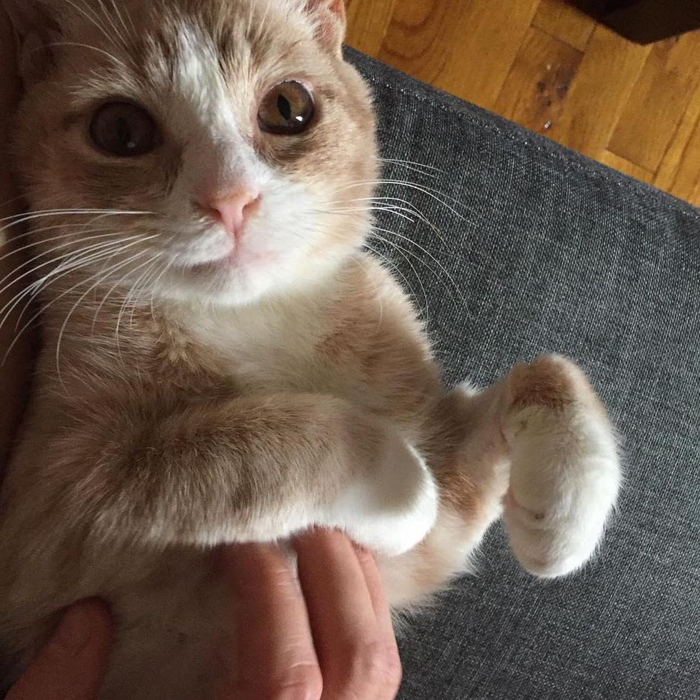 ▼現在Clayton已經完全適應了新家中的生活。牠非常親人,對同類也很友善。Rebeccah經常帶貓咪回家中途,Clayton就是她的好幫手,會幫馬麻照顧那些貓咪。