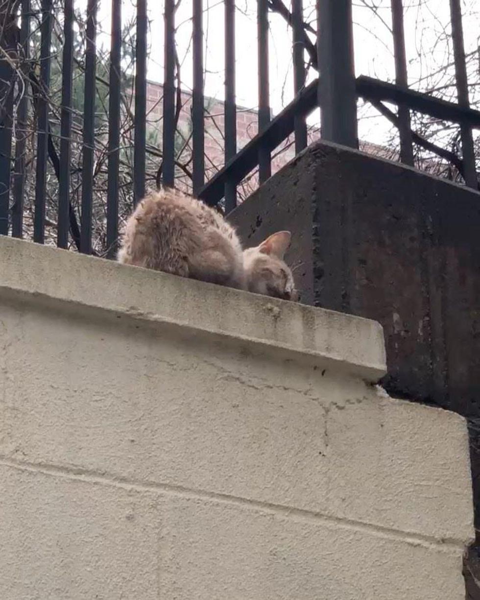 2022年02月16日不久前,紐約動物救援組織「Little Wanderers NYC」接獲通報稱,布朗克斯(The Bronx)的一處牆頭上趴著一隻浪貓。牠全身髒兮兮的,叫聲非常虛弱,迫切需要救助。志工們很快趕到現場,將那隻叫Clayton的小貓送到了獸醫院。