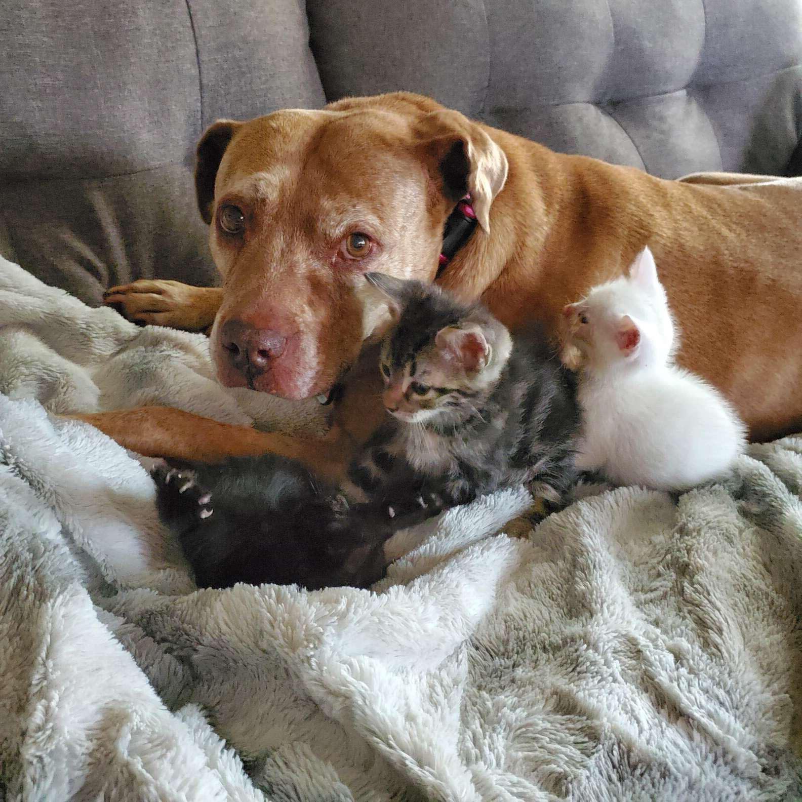 2022年02月23日美國德州聖安東尼奧(San Antonio)女子Liz Heck養了一隻14歲的狗狗Cheeky。Liz平時會幫忙中途小貓,家裡經常會有浪貓來討食,所以Cheeky很擅長跟貓咪打交道。最近一隻怕生的浪貓Sushi跑來蹭飯,友善的Cheeky融化了牠的心,讓牠願意卸下心防,留在這裡生活~
