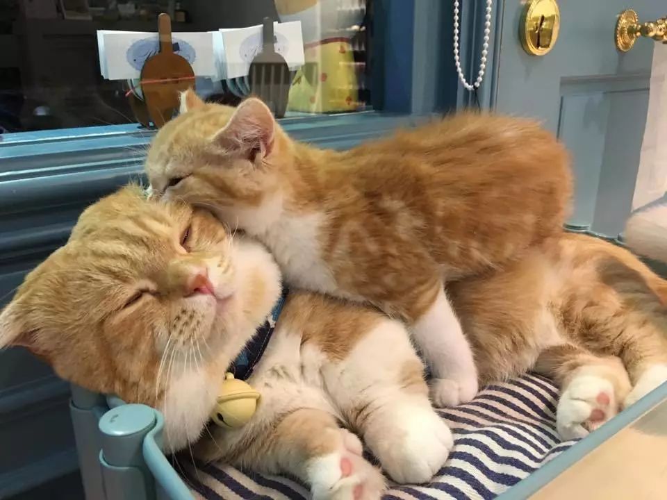 ▼看看這對可愛的大小貓咪,是不是非常令人感到療癒呢!