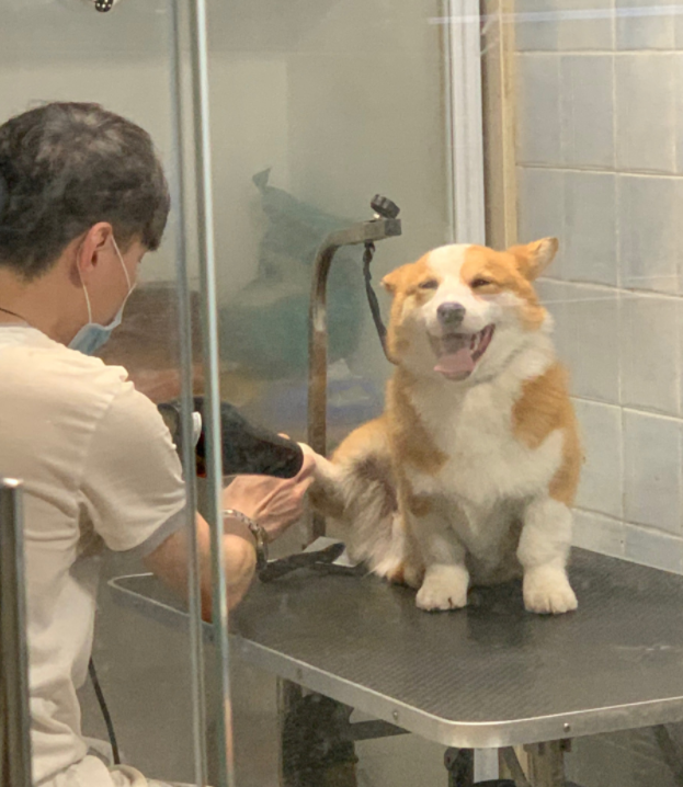 2022年02月25日狗狗也喜歡帥哥~大陸有一位網友楊小姐,她養了一隻可愛的柯基犬「小蘭」。小蘭性格活潑,很討人喜歡,但牠很不喜歡洗澡。每次馬麻帶牠去去寵物美容院洗澡,都會被員工表示狗狗太頑皮。最近馬麻又帶小蘭去洗澡,迎接他們的是一位年輕帥哥店員。沒想到小蘭看到對方後,竟變得超乖巧。