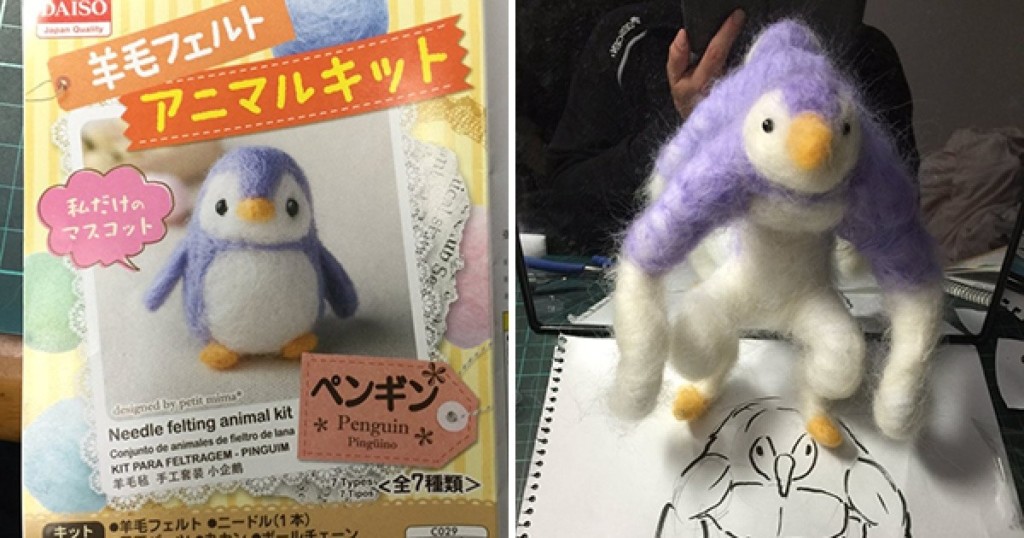 ▼這名女網友買了2包羊毛氈DIY,打算和男友一人做一隻送給彼此。她信心滿滿,以為自己肯定做得比男友好,「他平時寫字畫畫都不好看,完全像是被狗啃的」。