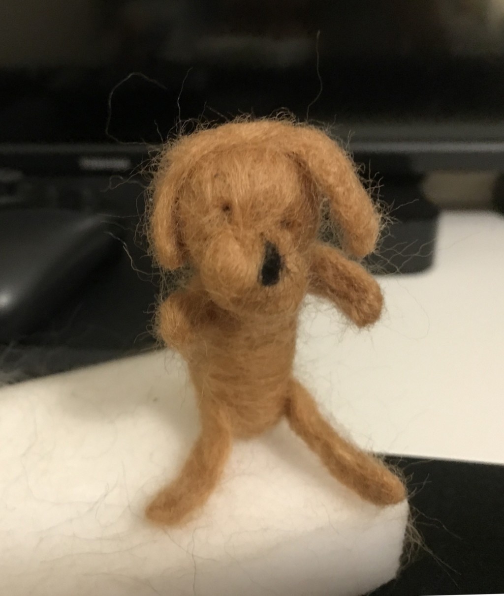 ▼「整個下半身好像有點過長!」這時候也沒辦法剪短,她只能硬著頭皮做完。5個小時後,她做出了一隻身體細長、手短腳長的奇怪狗狗。