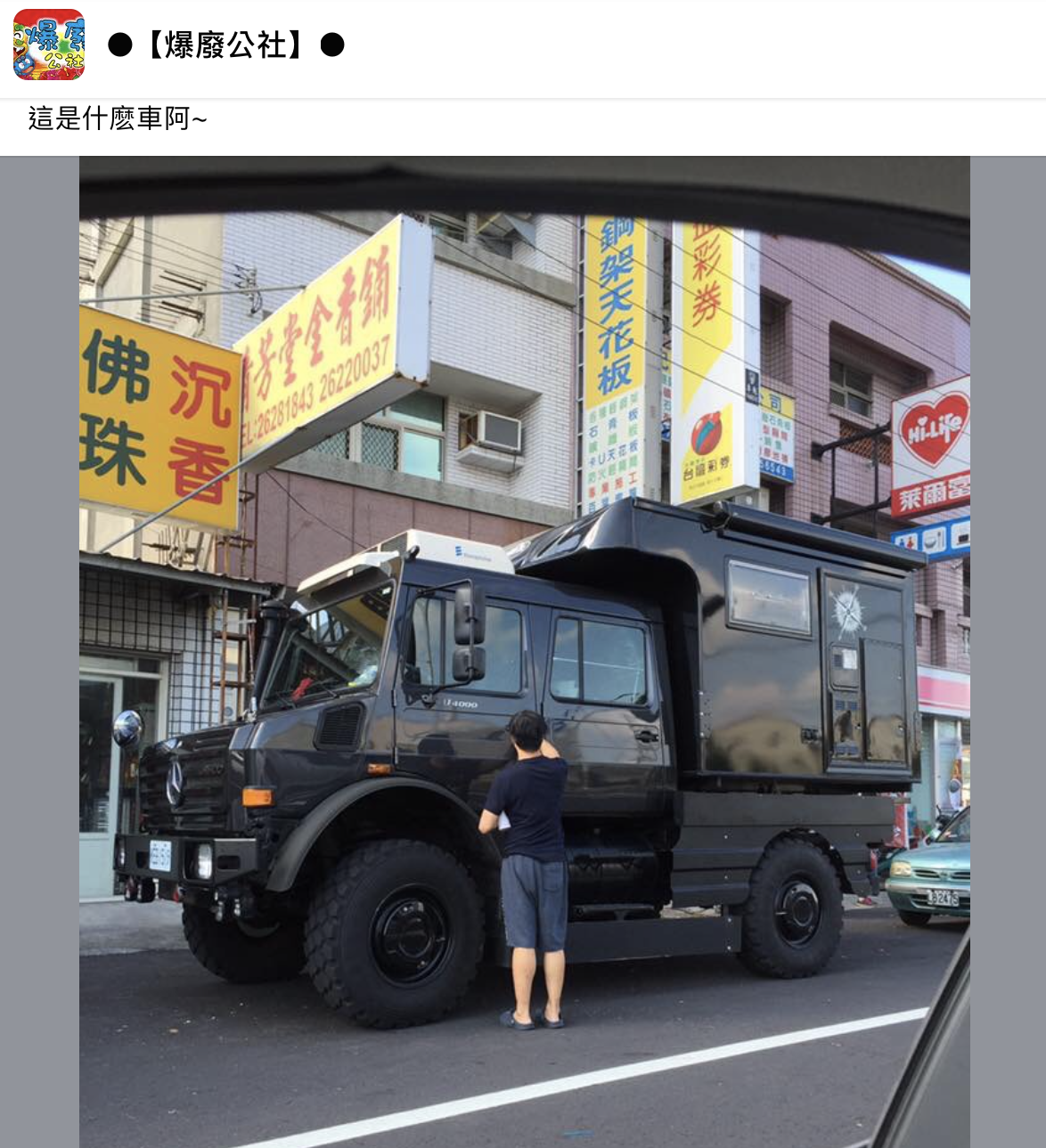 ▼據報道,該車款是賓士旗下的Unimog車系,擁有強大的越野能力。《年代新聞》曾做過相關報導,知情人士透露,該車款要價4千萬,僅驗車、掛牌就要花上百萬,而且露營車廂的配備、內部裝潢也要百萬。目前這是全台唯一一輛,車主是台中地方牙醫診所的一名牙醫師。
