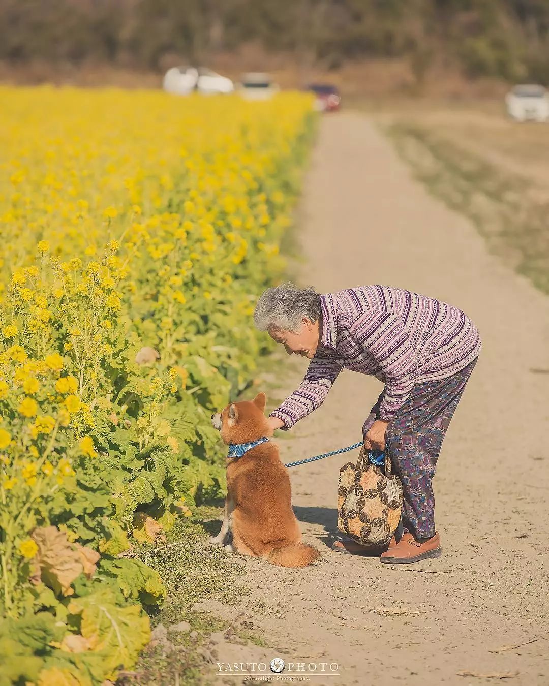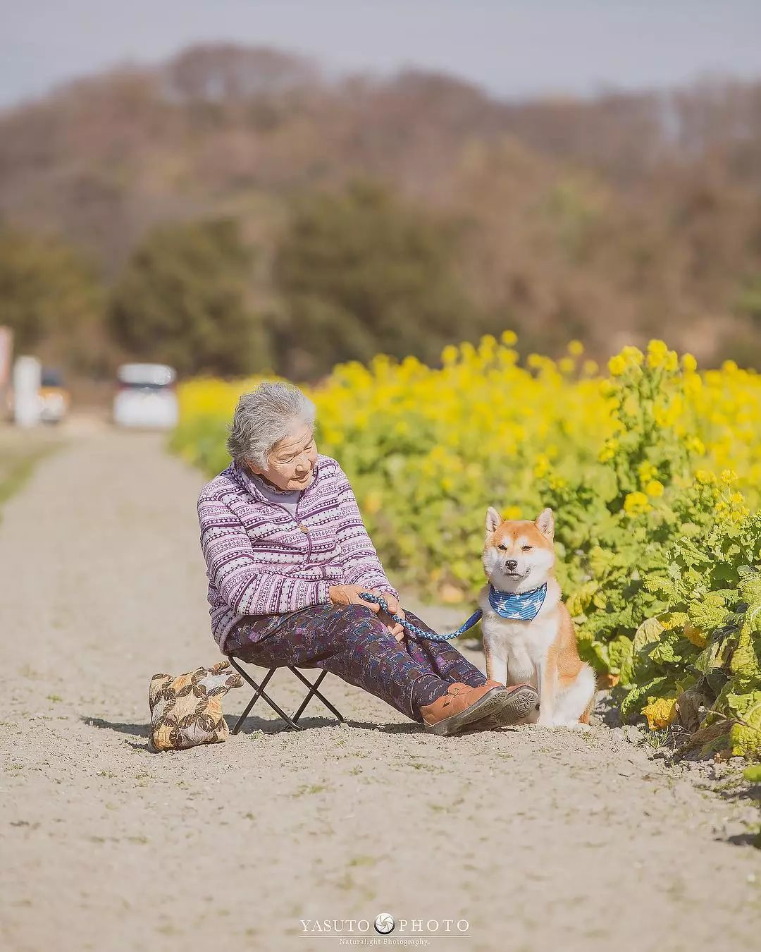 ▼和婆婆一起拍照的還有阿福。牠陪著婆婆走過向日葵花田、走過綠意盎然的鄉間小路、走過金黃的油菜花海…