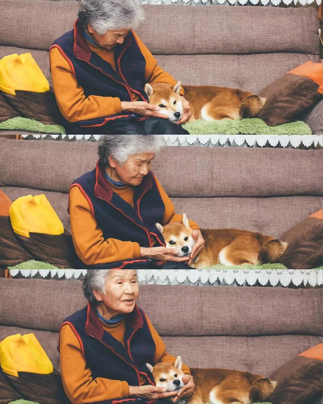 ▼這位老人是YASUTO的婆婆,已經86歲了。她滿頭白髮,臉上滿是皺紋,卻總是掛著溫柔的笑意,看起來活力滿滿。能讓婆婆笑得這麼開心的,就是那隻叫阿福的可愛柴柴。