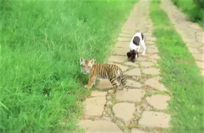 2022年03月04日動物之間跨越物種的友誼非常治癒~南非有一隻叫Hunter的孟加拉虎寶寶,牠出生在野生動物保護區「The Farm Inn Wildlife Sanctuary」。Hunter被媽媽拒養,成為孤兒,工作人員發現後將牠帶回去照顧。孤單的Hunter一直鬱鬱寡歡,直到牠跟狗狗Chelsea相識,情況才改變。