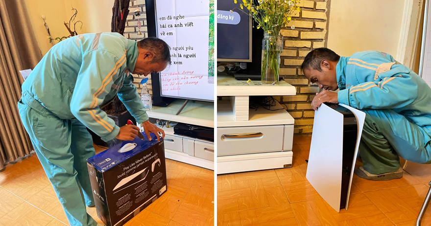 ▼這位網友Lê Gia Hưng在臉書上po文說,年初的時候家人覺得家裡的網路怪怪的,他就趁這個機會去買了PS5,並請店員幫忙,用安裝路由器的名義到他家安裝PS5。