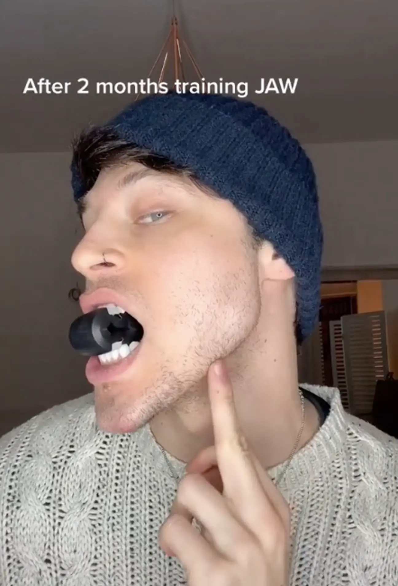 極限瘦臉!男模咬「黑色小物」狂練2個月 得意曬稜角臉:效果超好