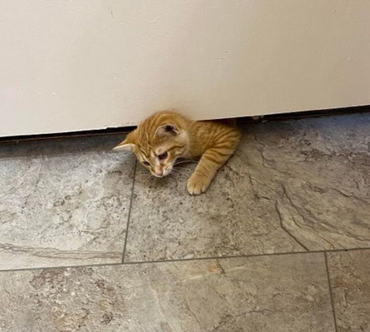 ▼貓咪是液體,牠們能從超小的縫隙鑽出來。
