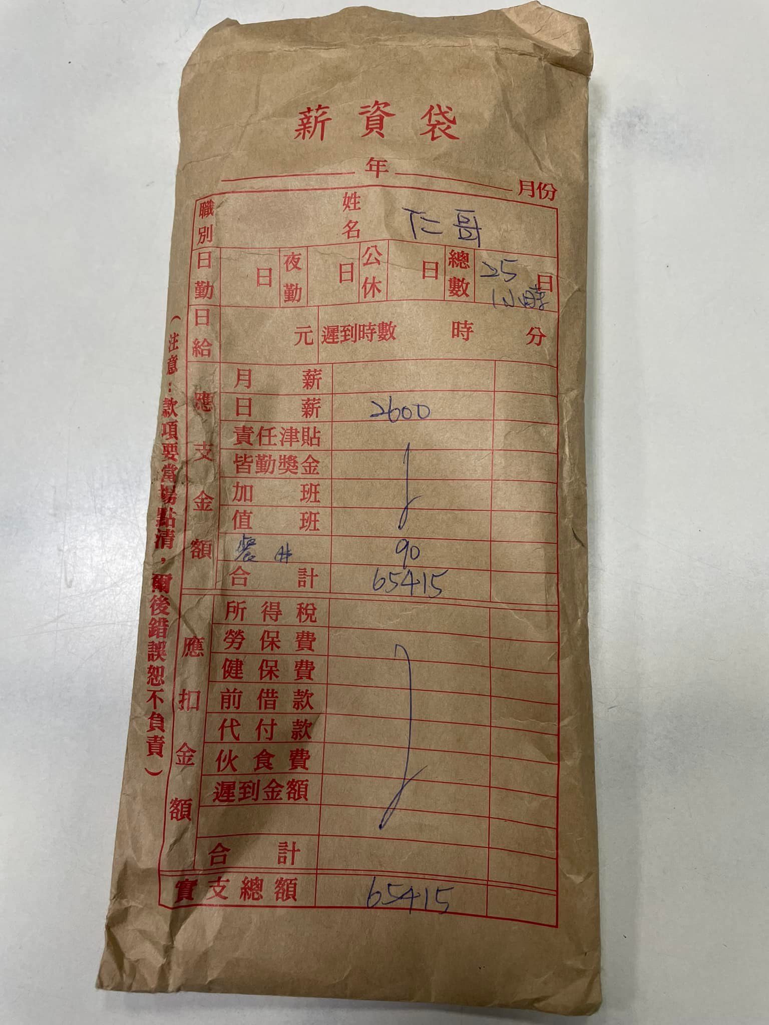 2022年03月14日宜蘭有一名綽號為「仁哥」的陳姓板模工,11日下班時將6萬多元的薪水插在後口袋,然後騎車回家,結果整袋錢掉在路上。後來一名楊姓男子撿到,並送到警局。陳男發現丟錢後去警局報案,順利找回了自己的薪水。他看到薪資袋裡的錢一毛都沒少,感覺非常感動~