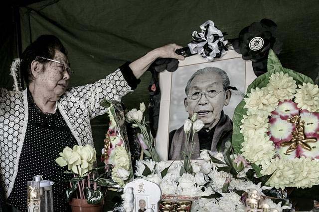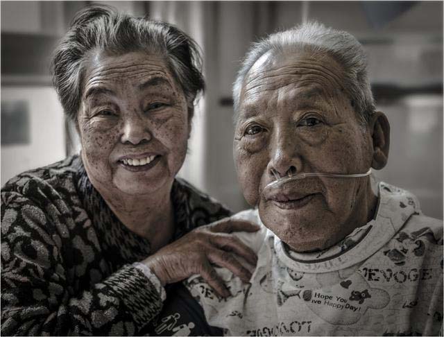 ▼這張照片是在加護病房拍攝的,畫面中的老夫妻正是攝影師的父母。當時醫院已經給爸爸發出六次病危通知,爸爸一直在昏睡當中。最後一次通知發下後,爸爸突然清醒片刻,他顫抖著向坐在床邊的老婆撒嬌說:「親親、親親……」媽媽聽到後忍不住紅了眼眶,還是低下頭溫柔親在爸爸的嘴唇上。徐英喆按下快門,拍下了這張名為《吻別》的照片。