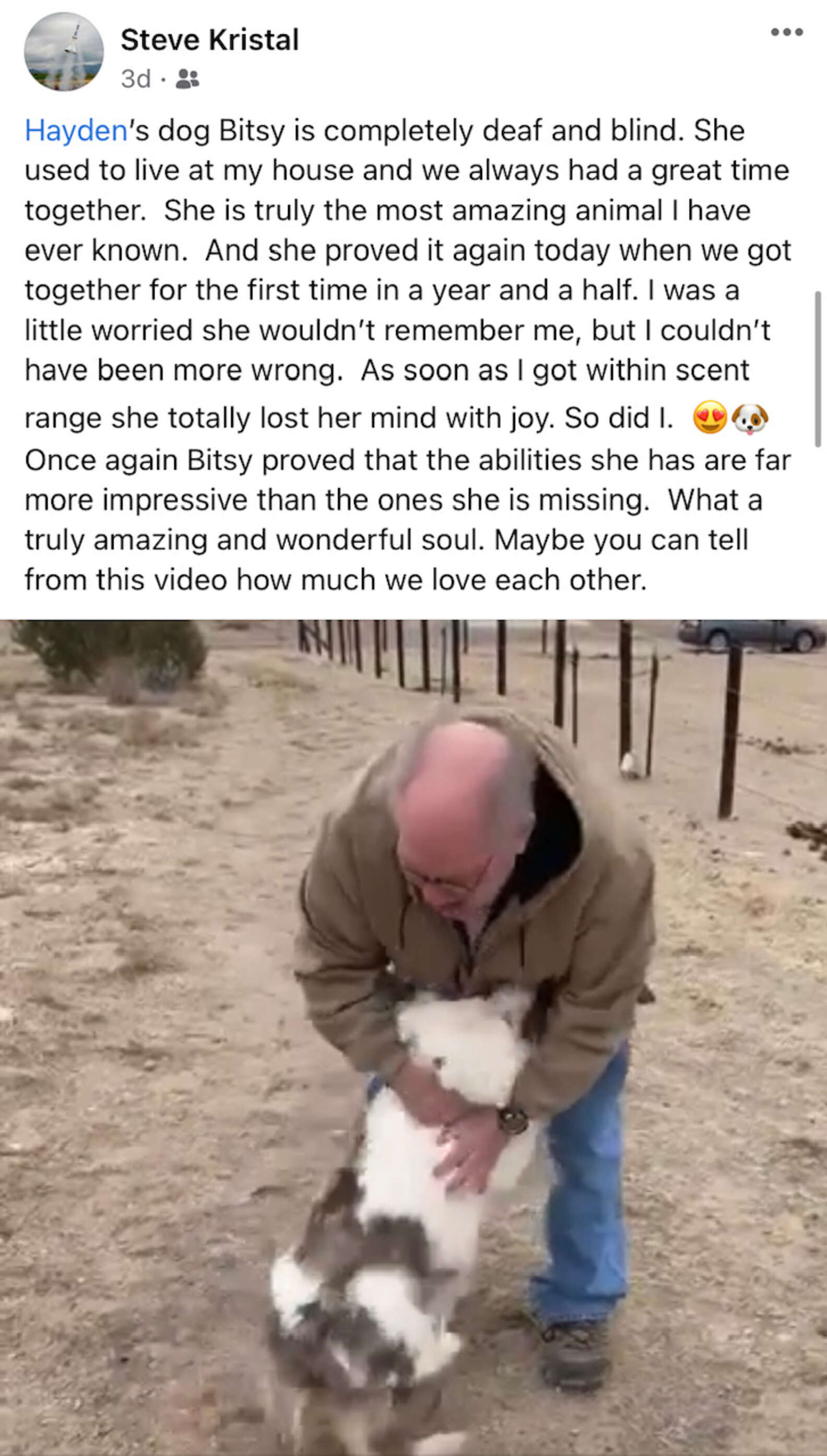 2022年03月16日狗狗永遠不會忘記心愛的主人!5年前,國外網友Hayden Kristal領養了一隻看不見也聽不見的小奶狗Bitsy。剛開始Hayden的父親Steve非常擔憂,因為照顧這樣一隻狗狗並不容易,但Bitsy非常活潑,也沒有其他的健康問題,Steve這才逐漸放下所有的擔心。