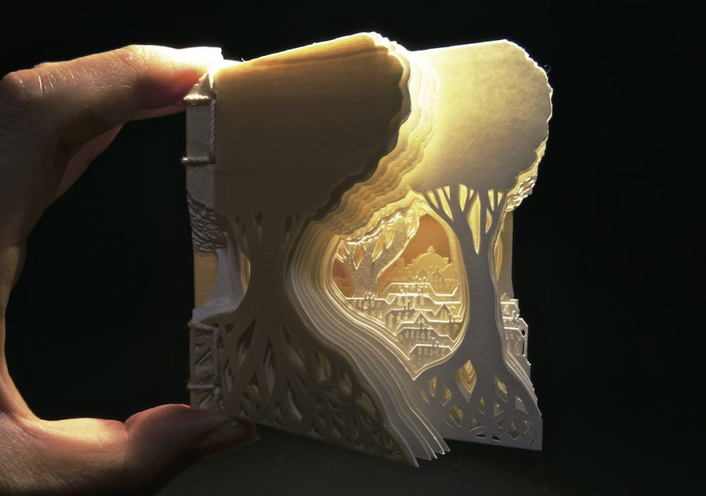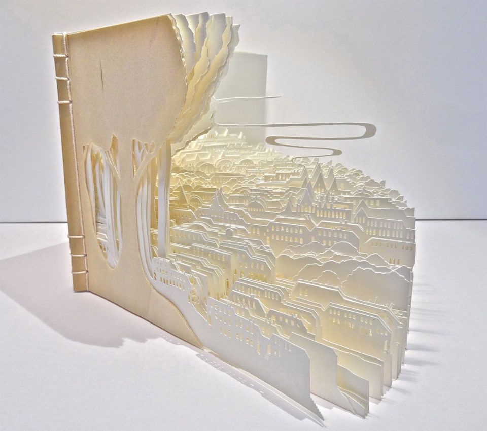 ▼這位紙雕藝術家參考了人與自然之間的微妙關係,採用傳統日本剪紙的方式,創作了一系列城市和森林景觀作品。