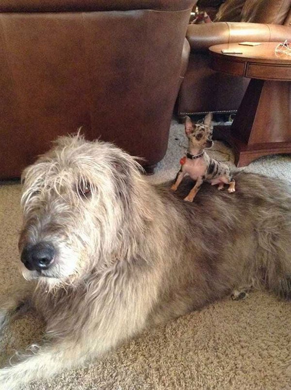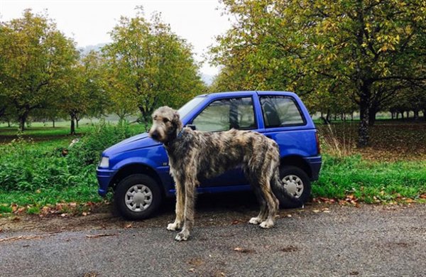 ▼愛爾蘭獵狼犬的歷史能追溯到公元391年,成年的狗狗體型比得上一輛車,是不是很驚人?不過牠們的內心跟其他狗狗一樣,軟萌可愛。