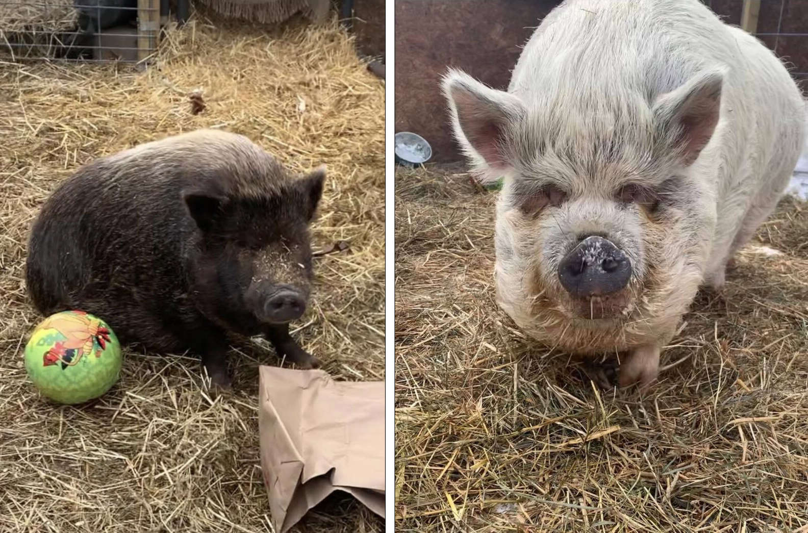2022年03月26日大約1年前,美國康乃狄克州女網友Rebecca Shaw收養了2隻豬豬,分別取名為Hammy和Mary。這2隻小豬給Rebecca的生活增添了很多樂趣。最近一隻黑熊爬進後院的圍欄,2隻豬豬竟勇敢出擊,將對方嚇得逃之夭夭。Rebecca不禁感嘆:「牠們真的很了不起!」