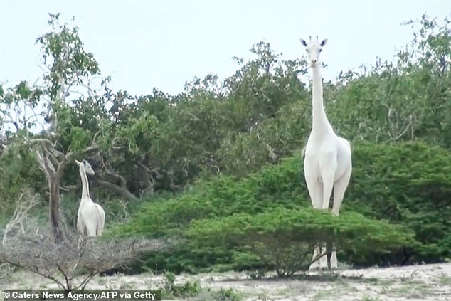 ▼工作人員在肯亞東北部的加里薩(Garissa)發現了這對白色長頸鹿母子的遺骸。2016年時,人們第一次發現白色長頸鹿,2017年時有人拍到了這些白色精靈的照片。如今只有1隻雄白色長頸鹿還活著,非常孤單。