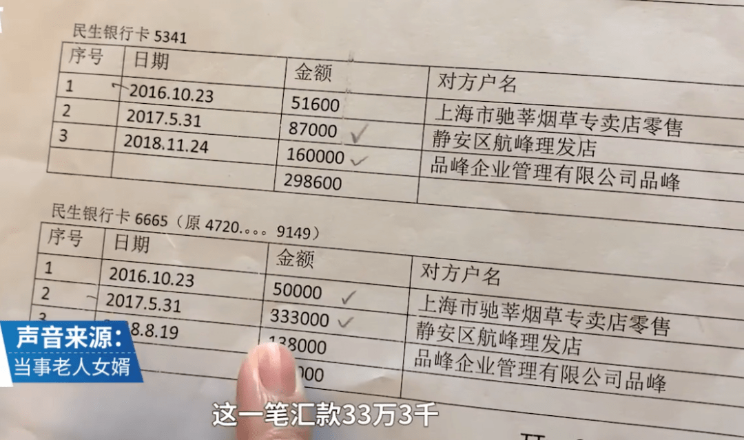 ▼店長表示,他們只能查到最近2年的消費紀錄,而且老人匯款的那名員工已經離職,根本聯絡不到了。老人付款的帳戶有些並不是公司帳戶,「私下轉給我們員工,這部分錢公司肯定查不到。」店長拒絕退款,也無法解釋老人的巨額花費,家屬決定找律師打官司。