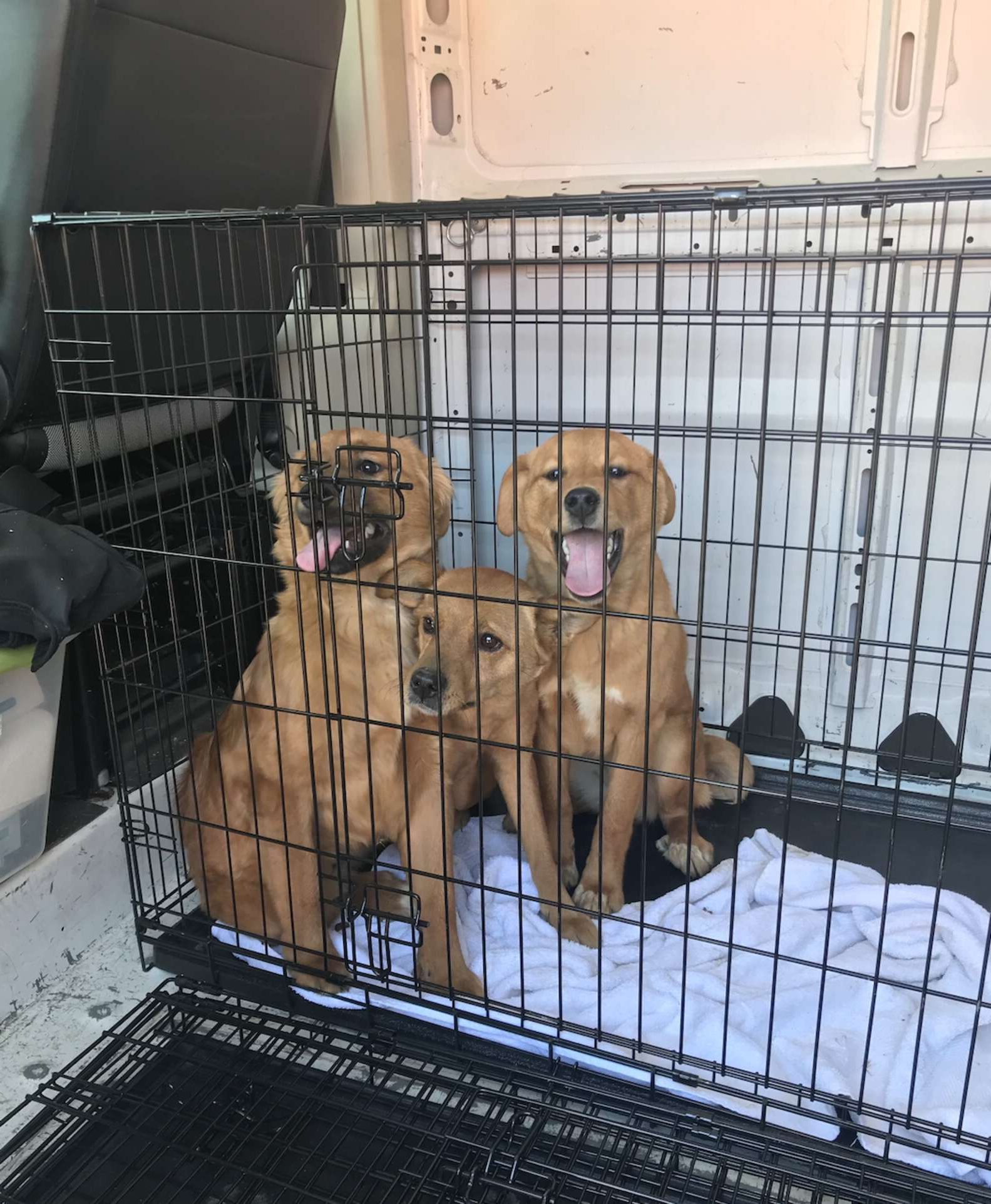 ▼獸醫檢查後發現,這3隻狗狗的健康狀況都沒有太大的問題。他們給7歲的狗媽媽取名為Lady,5個月大的2隻小狗則被取名為Peaches和Layla。