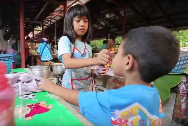 2022年03月31日窮人的孩子早當家。泰國有一名叫「碧兒」的小女孩。她剛剛9歲,就獨自經營炸雞店,撐起了整個家庭。原來她的父母離婚,她和2個弟弟跟著爺爺奶奶生活,經濟非常窘迫。為了讓大家過得好一些,小小年紀的碧兒成為了這間炸雞店的老闆~