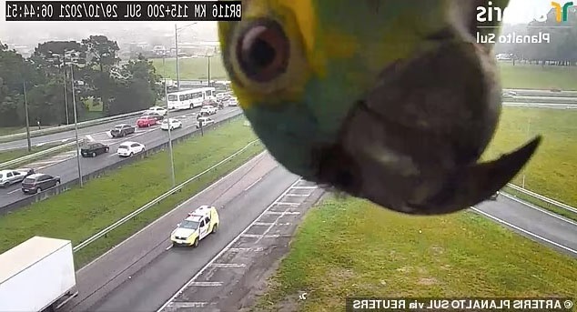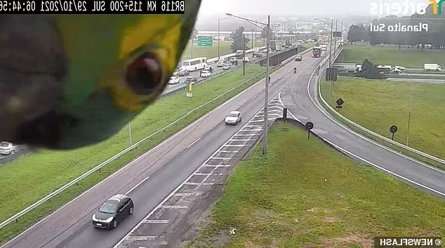 2022年04月07日高速公路監視器不僅能記錄交通狀況,有時也會拍到有趣的畫面。最近巴西城市庫裡提巴(Curitiba)附近繁忙的BR-116公路上,竟有一隻亞馬遜鸚鵡(Amazona Aestiva)對著公路監視器探頭探腦。牠在鏡頭前大玩躲貓貓,看起來超可愛~