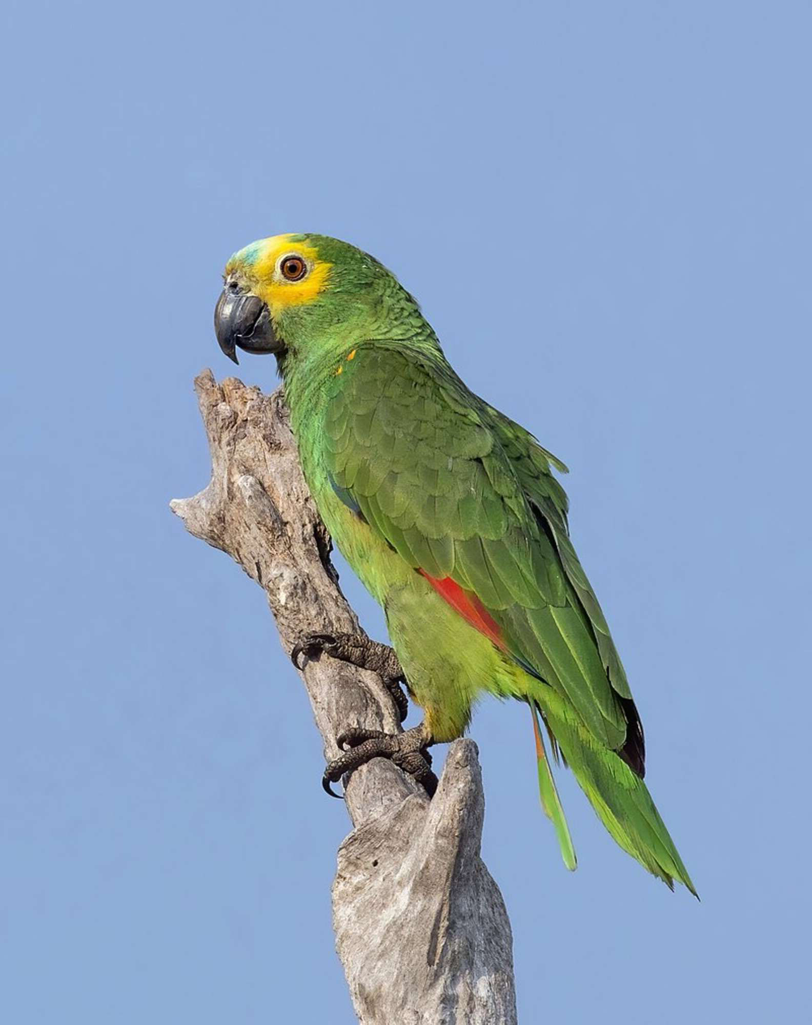 ▼亞馬遜鸚鵡也被稱作藍頂鸚鵡,這種鳥類在巴西、玻利維亞、巴拉圭和阿根廷北部都很常見。不過因為森林砍伐和寵物買賣,亞馬遜鸚鵡的數量正在減少。