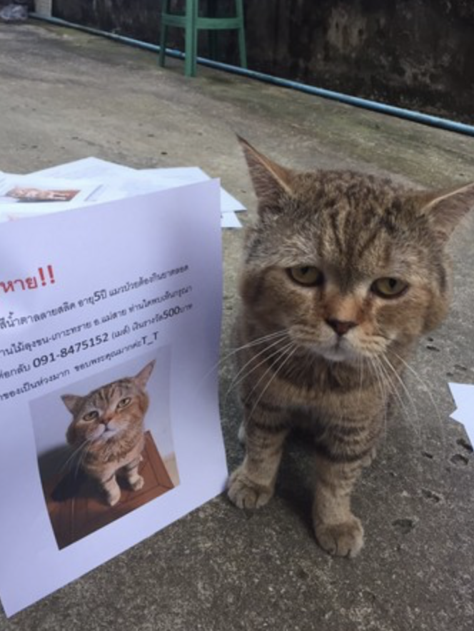 2022年04月03日現在很多飼主將毛孩當成親人,毛孩走失後,飼主擔憂又心急。最近泰國的一位網友就遇到了類似的情況,他找遍家裡都沒看到愛貓,以為貓咪走失了,於是印了厚厚一疊傳單準備出去張貼。正當他心急如焚時,奇蹟竟然出現了。接下來的發展超展開!