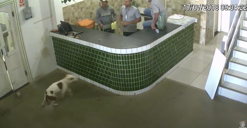 2022年04月04日熱情的狗狗很討喜,但怕狗的人遇到太主動的狗狗,就有不一樣的體驗了~2018年時,巴西羅迪尼亞鎮(Rodnia)的一間餐廳中出現了有趣的一幕。當時一群裝潢工人正在餐廳內忙碌,一隻牛頭梗突然闖進來。裝潢工人嚇了一跳,立刻落荒而逃。狗狗還以為他們在跟自己玩,狂搖尾巴看起來很開心。