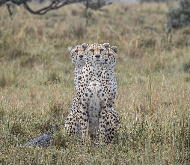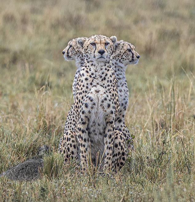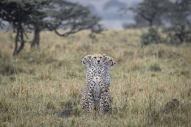 ▼Paul拍照的時候,3隻獵豹似乎有所察覺,同時轉向面對鏡頭。牠們身姿挺拔,眼神機警,團結在一起的模樣格外帥氣。Paul忍不住直呼:「這一刻真的令人既驚喜又著迷,在雨中等了7小時,瞬間非常值得!」