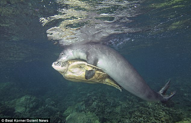2022年04月05日動物世界經常會有感人的畫面出現!2017年時,攝影師Beat Korner在美國夏威夷海岸附近看到了罕見的一幕。只見一隻海豹趴在海龜背上,久久不願離開,似乎是在搭便車。Korner覺得很有趣,靠近看了一下,這才發現海豹是在幫助那隻被困的海龜。