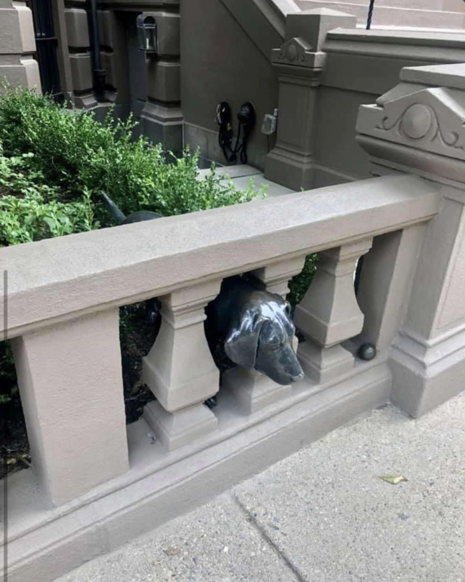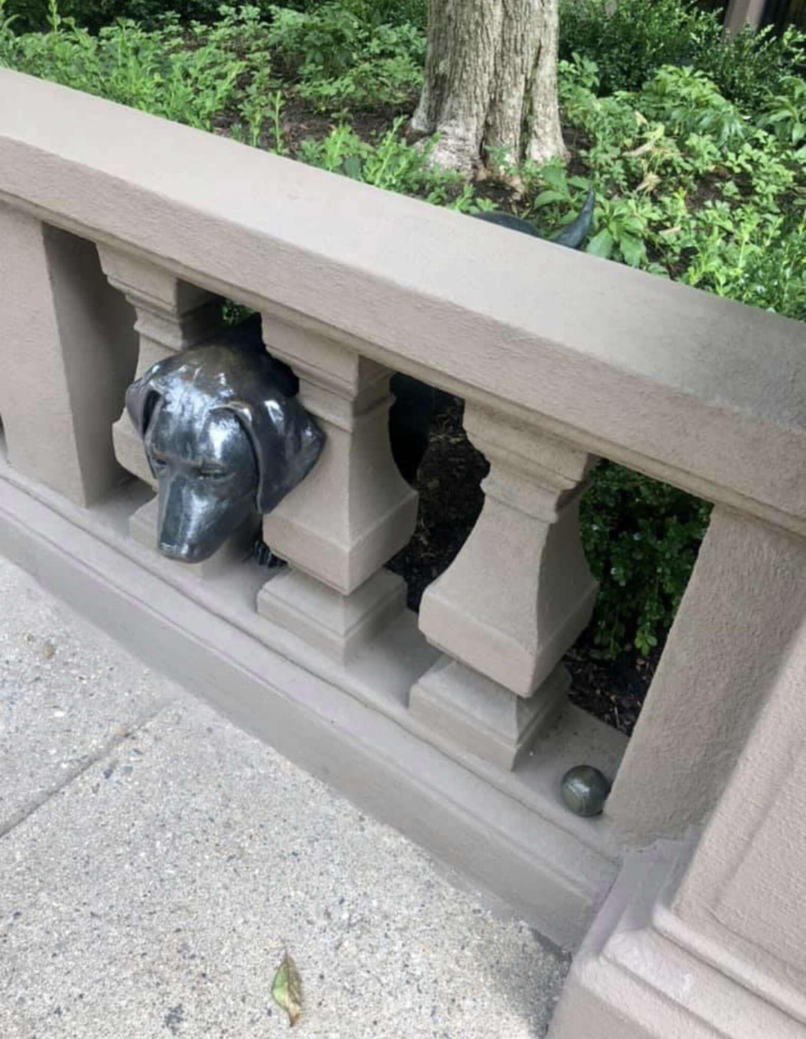 散步經過「狗狗鑽圍欄雕像」 她困惑「怎那麼栩栩如生?」釣出主人可愛解答