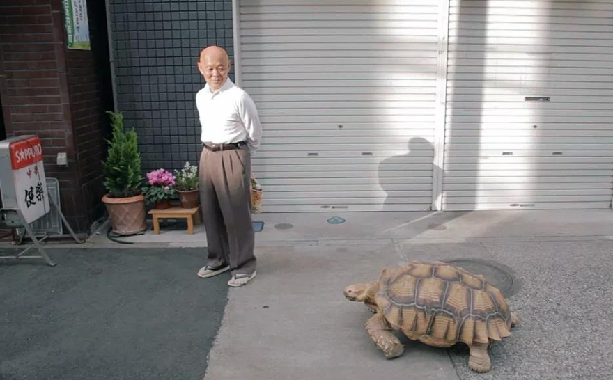 日本老爺爺街頭「遛龜」成奇景 帶70公斤老朋友散步引路人圍觀