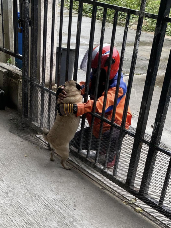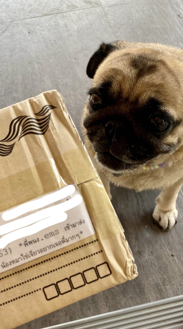 2022年04月13日泰國一位網友養了一隻可愛的巴哥犬Kaijeaw,Kaijeaw聰明又可愛,還很愛交朋友。有一天主人睡午覺時,突然聽到門外傳來聲音。她往窗外一看,竟然是郵差叔叔來送包裹了。原本趴在地板上休息的Kaijeaw立刻跑過去,興奮地跟郵差叔叔招呼。