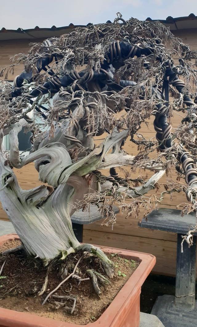 還有專業的網友說:「我們玩真柏盆栽裡高檔品俗稱『三郎柏』,價格80萬到上百萬,可惜了一顆好樹。」有人好奇地問,這盆真柏是否相當於一台車的價位,那名網友回覆說:「我可以很認真的回答,一台賓士不見了。」盆栽竟然枯死了,這是多長時間沒澆水了?!