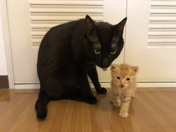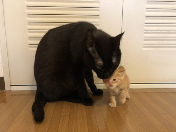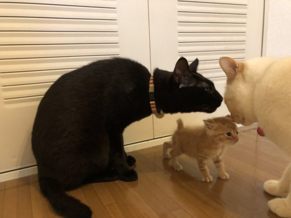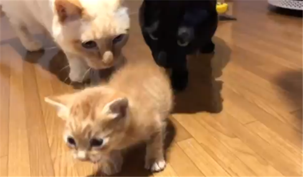 ▼「 イチそらあめ」的喵喵分別是9歲的白貓Ichi、3歲的黑貓Sora。2019年5月5日,家裡來了一位新成員,這隻出生沒多久的流浪小橘貓初來乍到,牠看起來非常不安,還緊張到身體瑟瑟發抖,當兩隻大貓靠近它的時候,牠會下意識的走開。