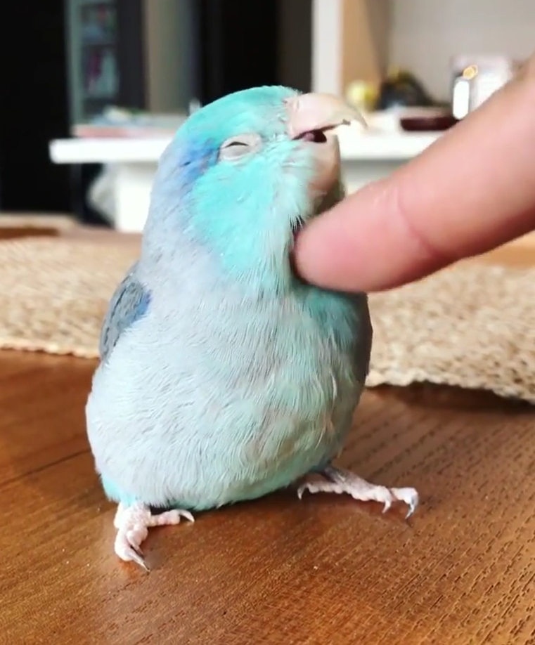 2022年04月15日沒有動物能抵擋人類雙手摸摸的魔力!貓咪、狗狗都很享受主人的摸摸,連小鳥都超愛。最近Instagram帳號Blue Birds Butle分享了家中太平洋鸚哥的可愛影片,這隻叫SIZUKU的小鸚哥長著漸層淺藍色的羽毛,身體圓滾滾的,非常可愛。牠最喜歡主人的摸頭獎勵了。