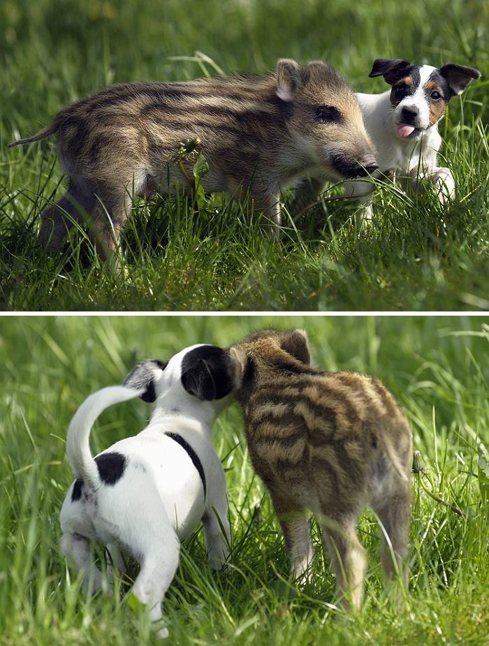 ▼19.豬豬和小鹿依偎在一起,超可愛!