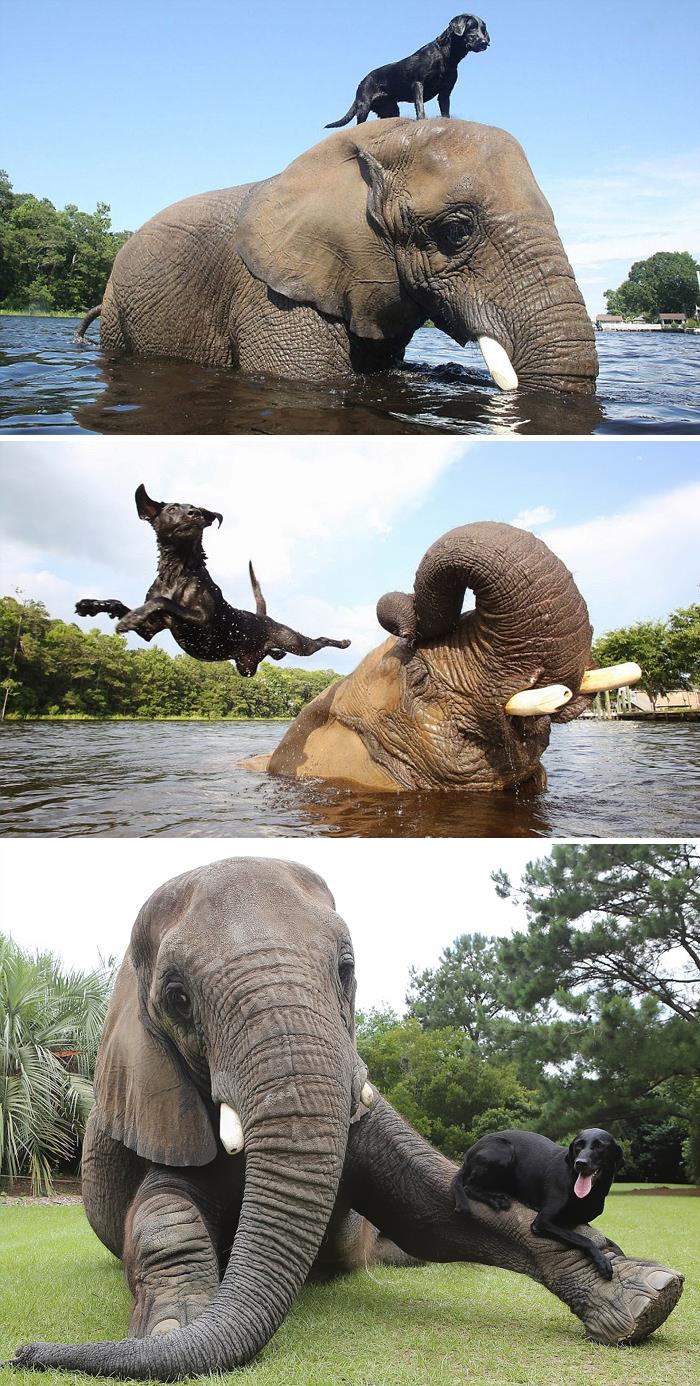 ▼1.非洲大象Bubbles和拉不拉多Bella,在一起的每個瞬間都洋溢著滿滿的幸福感。