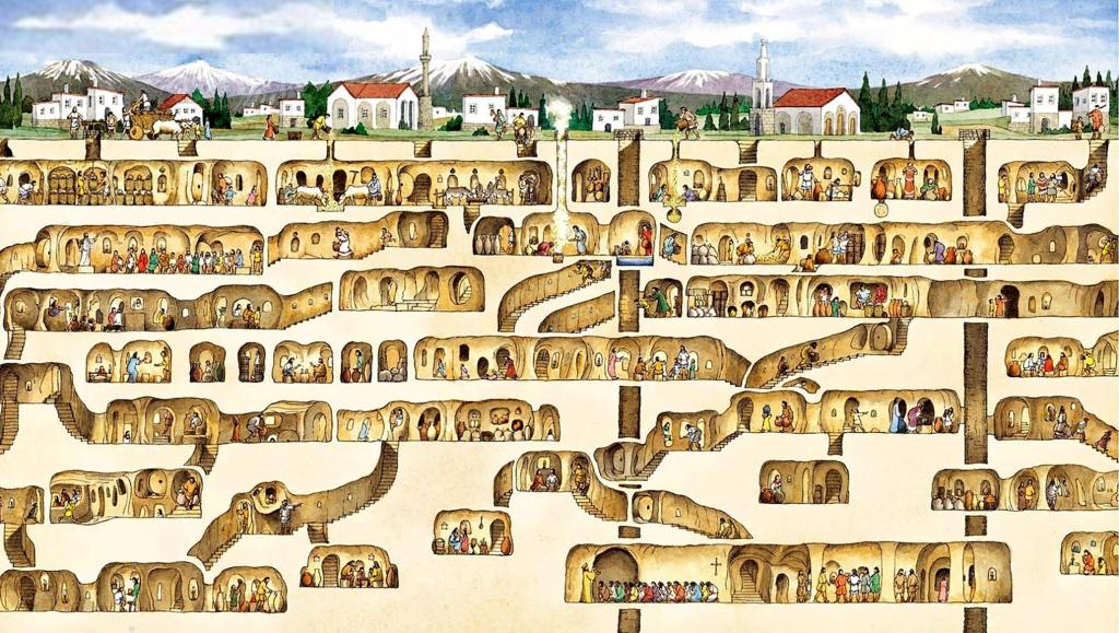 「德林庫尤」遺址是當地最大的地下城,約有18層樓深,可以容納近2萬人居住。地下城的生活機能相當完善,不僅有釀酒廠、榨油廠等等,還有馬廄、禮拜堂。「德林庫尤」建於西元7、8世紀,考古學家研究通風口和秘密通道後,認為該城是建來供人們躲避戰爭或天然災害的。因為裡面有小型教堂,最底層還有宗教擺飾,所以很可能是中世紀基督徒為躲避執政者迫害而建造的避難所。