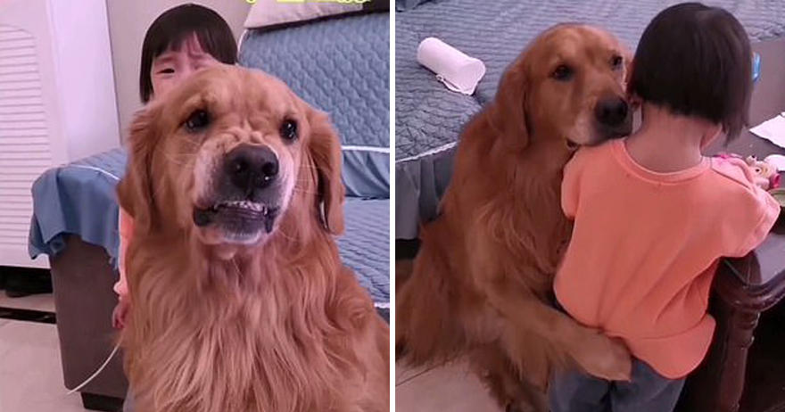 2022年04月20日狗狗是人類最好的朋友~大陸徐州的一個家庭養了一隻6歲的金金「哈利」,牠跟3歲左右的小主人感情特別好。有一天小主人調皮做錯事,媽媽氣得訓斥她,小主人忍不住流淚,哈利看到這一幕竟挺身而出,出面阻止媽媽,保護小主人。