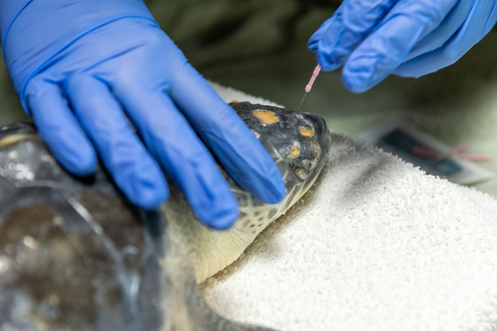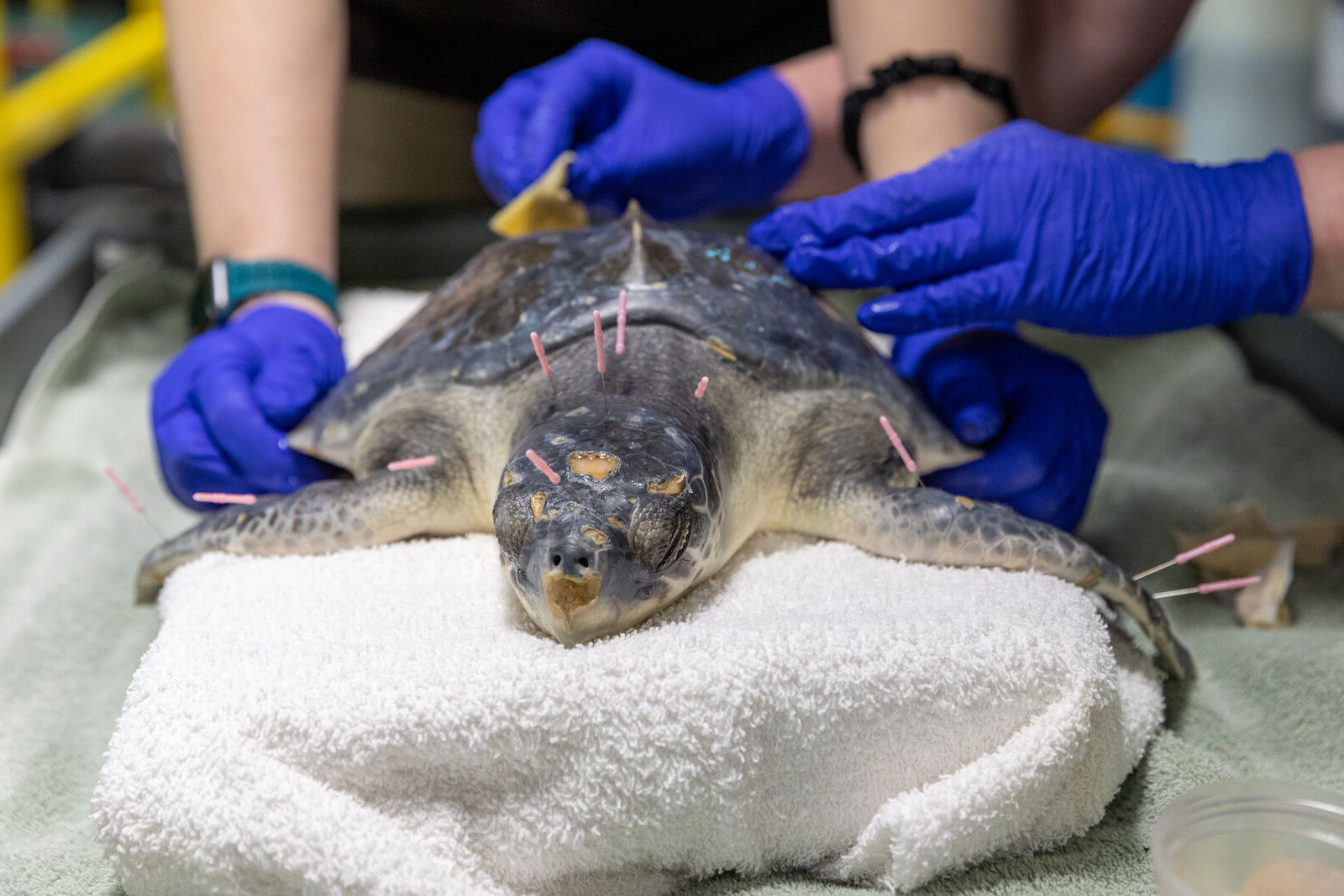 海龜也能針灸!小海龜獲救「嘴巴無法張開 扎針後大改善:能吃飯飯囉~