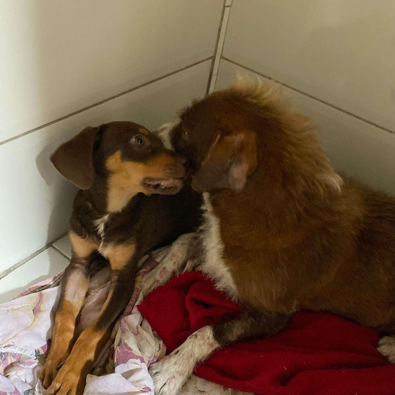 ▼正在這時,Viva Bicho Santos又救援了一隻年輕的小狗Sara,牠身邊沒有同伴,所以非常焦慮。志工們決定讓Samanta跟Sara見面,也許牠們能填補彼此心中的空白。