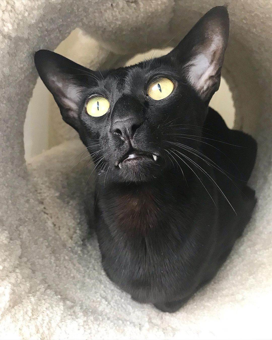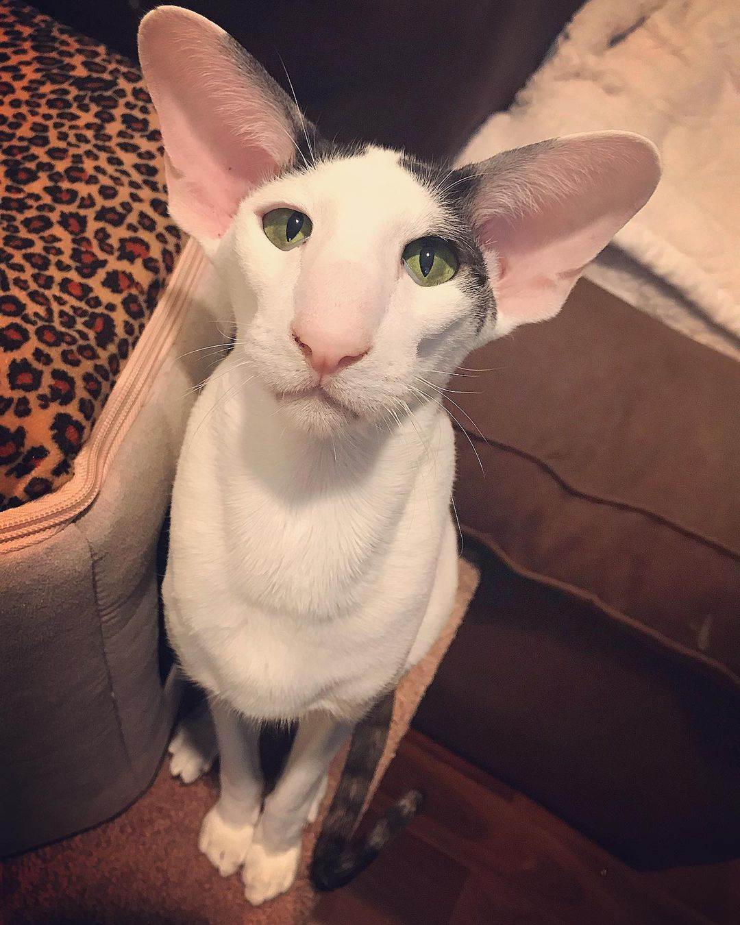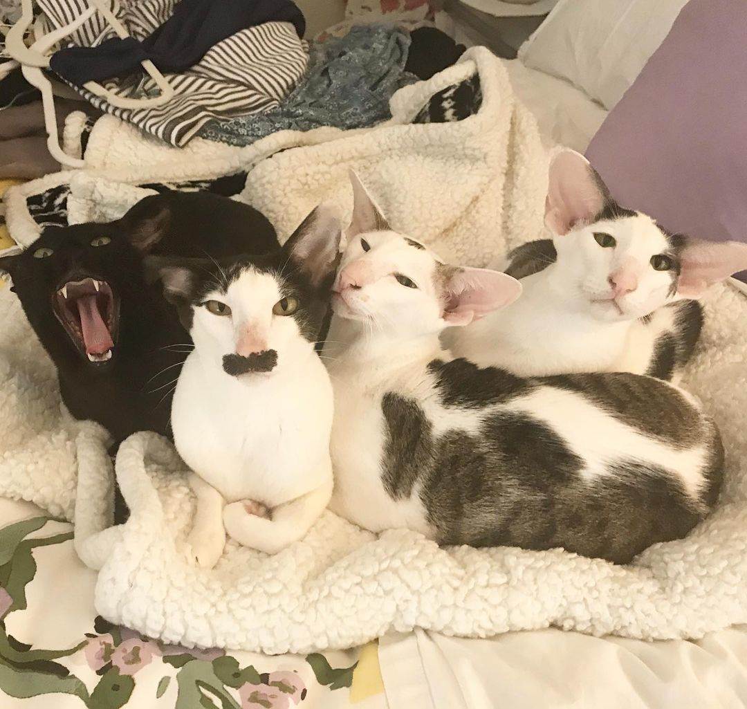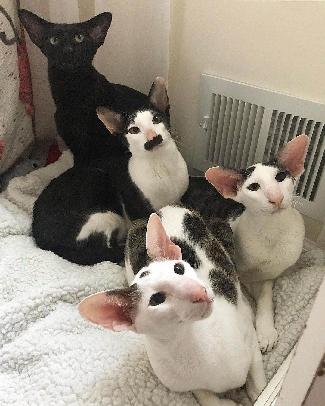 ▼這4隻貓咪的耳朵大大的,就像蝙蝠翅膀一樣,跟多比一模一樣。網友們看到照片後都很驚奇,追問主人這些貓咪到底是什麼品種?主人回答說,這4隻貓咪都是「東方短毛貓」!