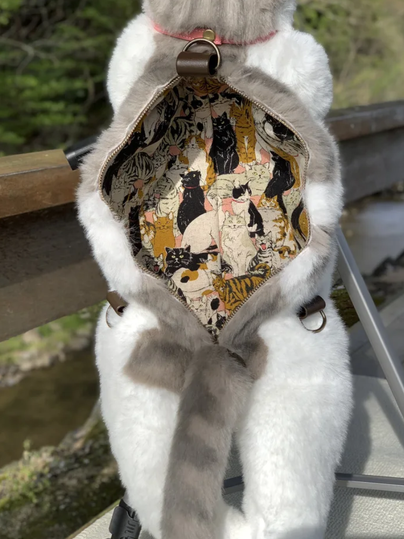 這款貓咪後背包使用了78種零件縫製,還原度超級高。將它背出門,或者抱在懷裡當娃娃,都是很好的選擇。如果想養貓咪,又沒有時間照顧,有了這款包包,就像有了一隻寵物一樣,真是太完美啦~