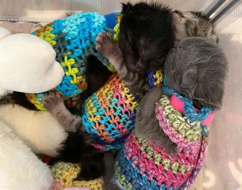 ▼小貓們剛剛出生就失去媽媽,牠們會本能地互相吸吮,這是非常不安全的。Penny為牠們穿上迷你毛衣,幫助牠們改掉這個習慣。