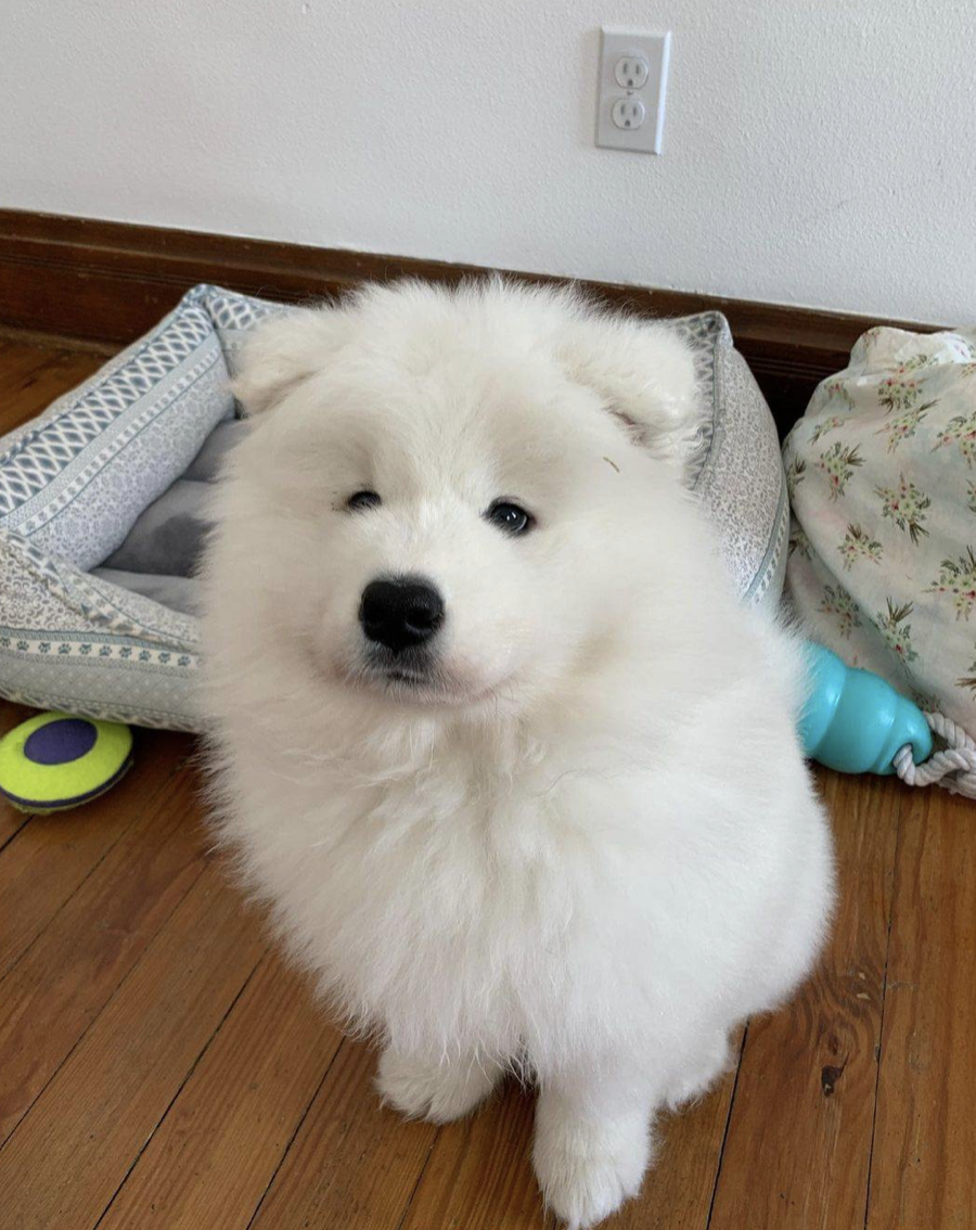 2022年04月25日狗狗的學習能力超級強!國外有一位飼主養了一隻可愛的小薩摩耶Beaux。為了不讓Beaux隨地大小便,主人開始訓練牠定點上廁所。沒想到有一天主人走進廁所時,竟發現Beaux坐在馬桶上。原來Beaux想要學主人用馬桶上廁所,但不知道該怎麼做,那滿臉疑惑的模樣超可愛。