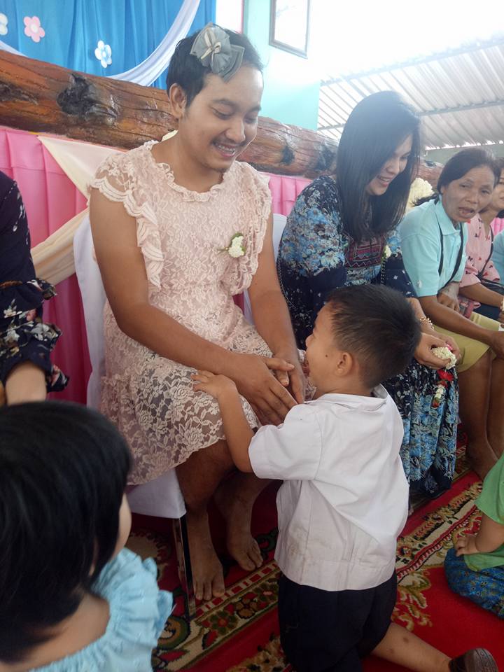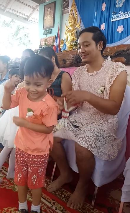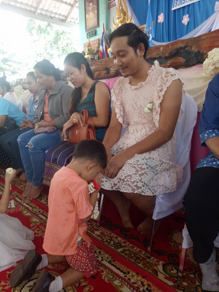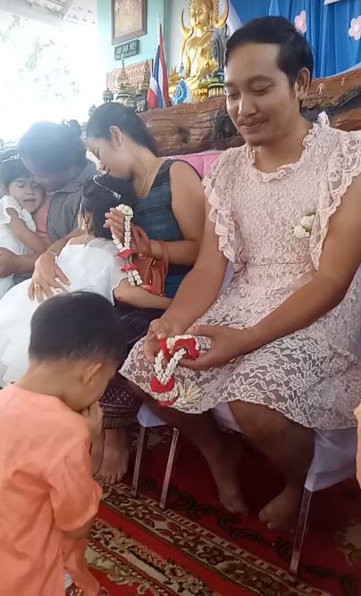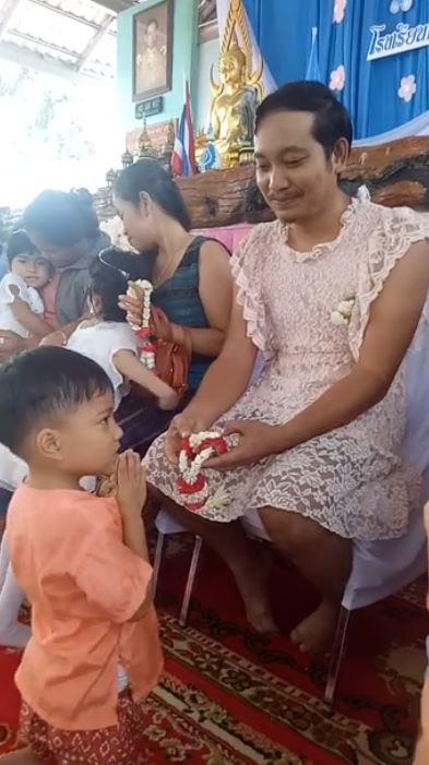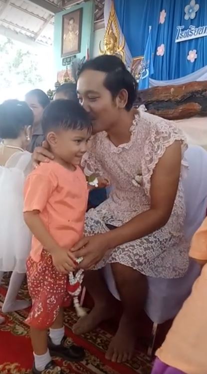 2022年05月09日每年的8月12日是泰國的法定母親節,這一天泰國的各大學校和機關都會放假,放假前還會舉辦活動,讓孩子以跪拜的方式感恩母親。不過對於那些由單親爸爸照顧長大的小孩,這樣的活動不免會讓他們感覺失落。下面這位單親爸爸不希望孩子在活動上落單,於是穿上女裝陪伴孩子參加母親節活動。